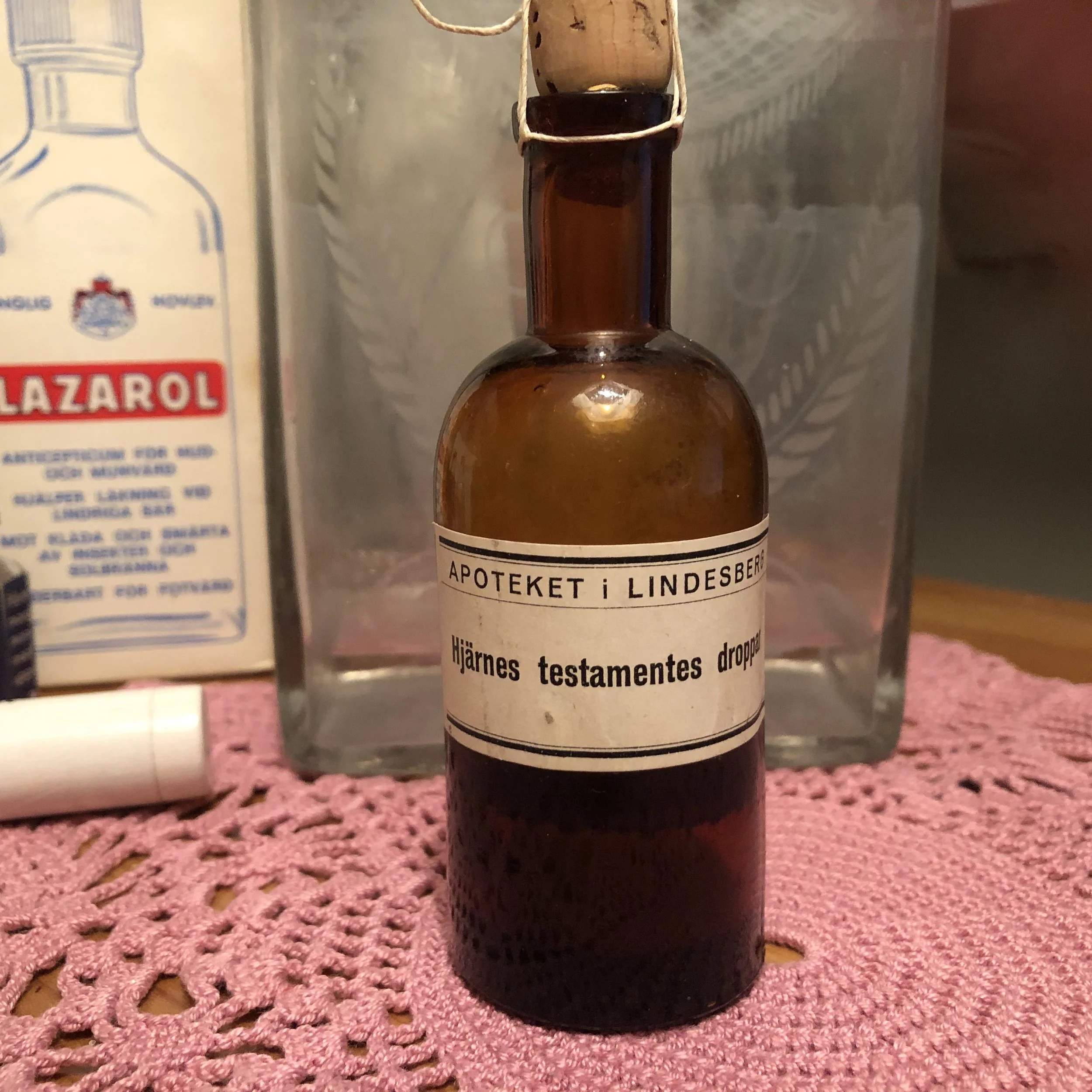 BITTRA DROPPAR. Hjärnes testamente såldes som koncentrat i små flaskor och droppades i te eller sprit. Vår version av Hjärnes Testamente säljs färdigtappad på flaska och är spädd i sprit från Tevsjö Destilleri i Hälsingland.